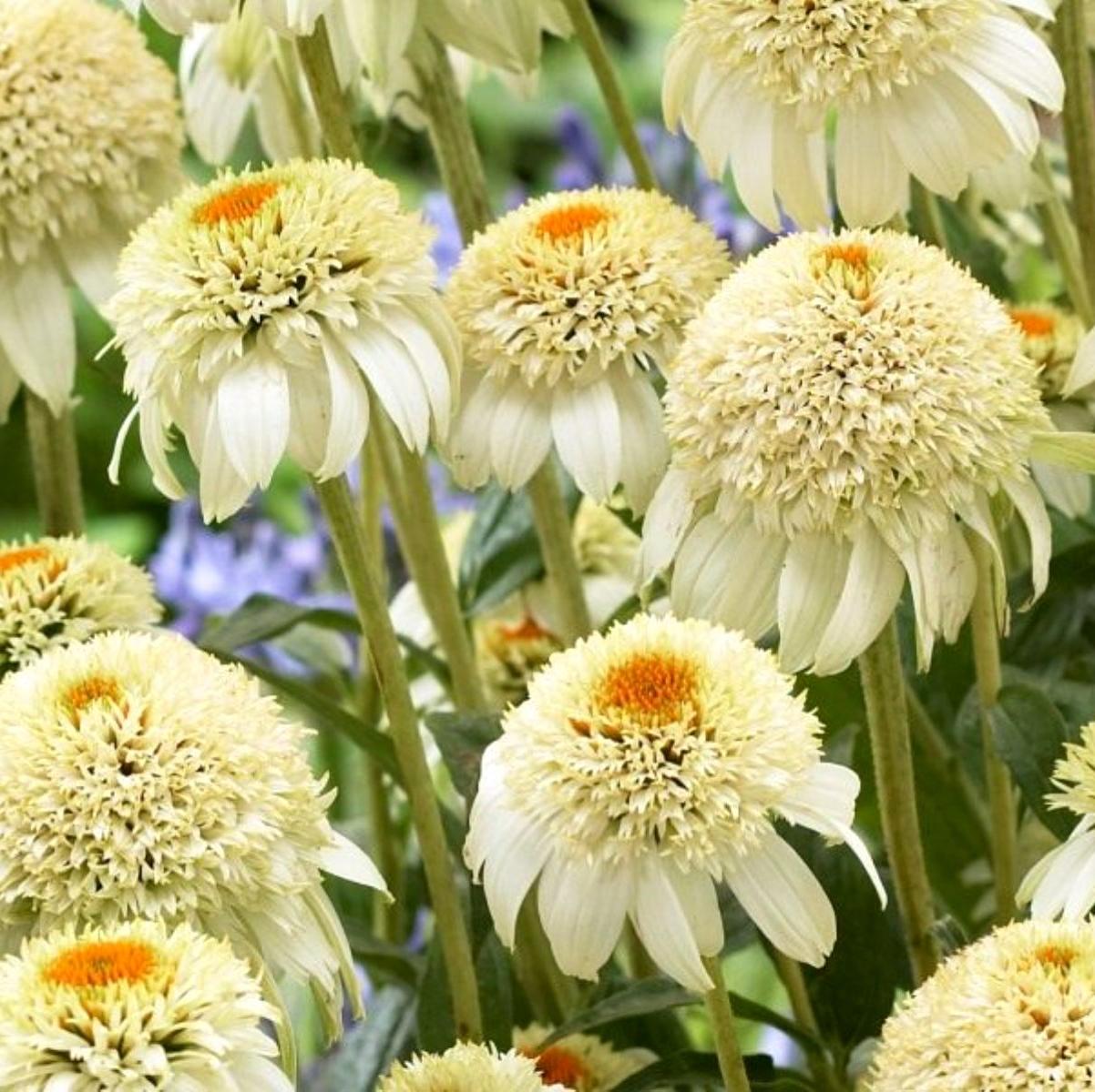 Эхинацея пурпурная Милкшейк высокорослое растение, которое достигает 90 см. Хорошими компаньонами для него станут другие контрастные цветы разного размера.